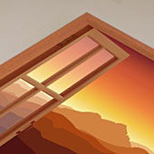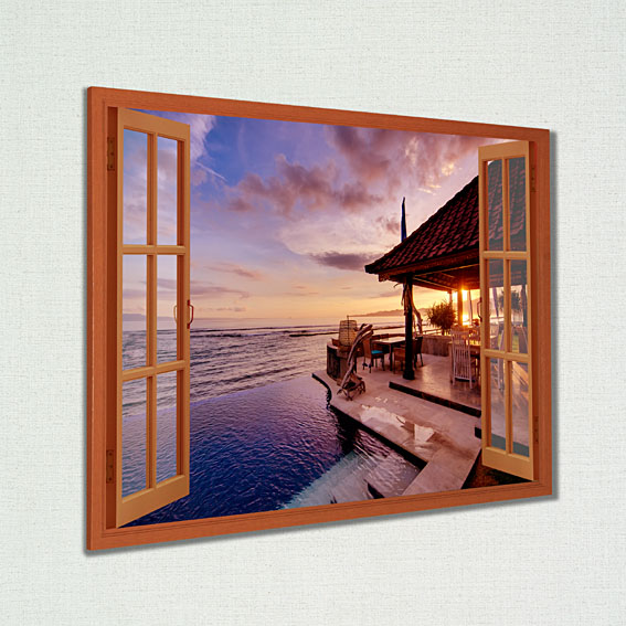 木製ポスター用フレームに、大型インクジェットプリンターで印刷した写真が入っています。 顔料インクで印刷後、ラミネート加工がしてあります。 風景写真に、画像処理で窓を合成して、印刷したものを木製パネルに入っていますので、立体的に見えます。 ポスターの交換も簡単に出来ます。 差し替え用のポスター(別売)を入れ替えるだけで、新しいイメージになります。 ポスターのサイズは、A1(59.4×84.1センチ)、木製フレームのサイズ(63×88センチ)、厚み1.6センチ、幅2.5センチ。 |