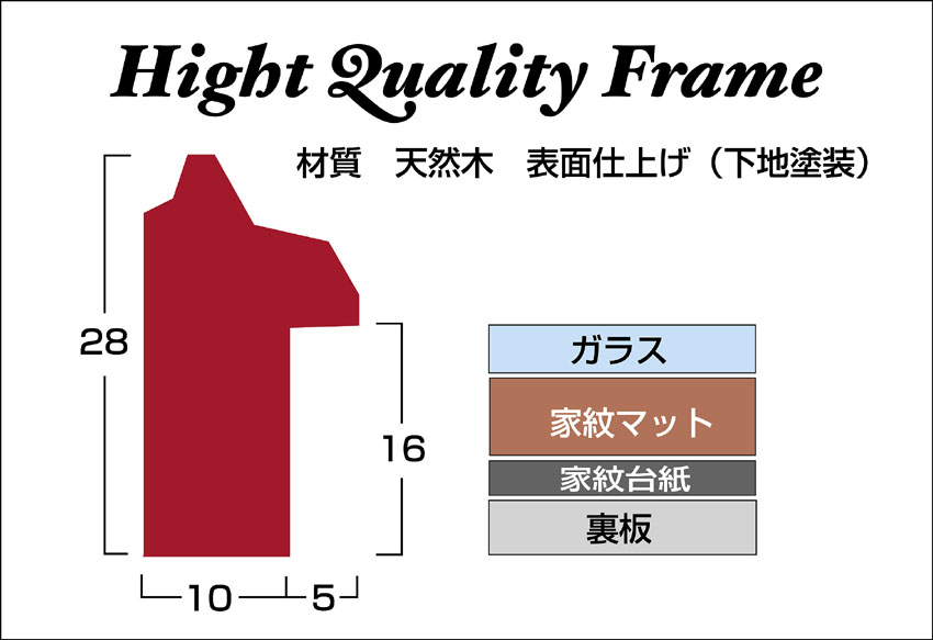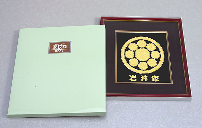 | 【サイズ】巾38センチ×高さ41センチ・厚み3センチ 【重 量】約1760g(ガラス入り) 【家 紋】23センチ×26センチ 【 箱 】43×39×3.7 【吊り具】吊りカン、紐付 ※掲示方法の写真に写っています額スタンドはつきません。 ※制作には営業日3日位掛かります。 ※モニターの調整によって実際の商品と多少色が異なる場合があります。 混み合っている場合は、お時間を頂く場合もございます。 |